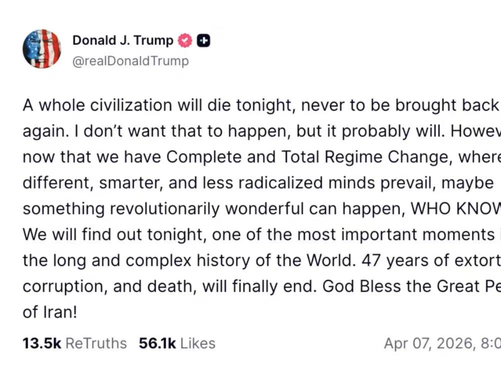 特朗普在2026年4月公开重申了对伊朗民用基础设施的打击威胁,这正是他要把伊朗“打回石器时代”言论的背景: