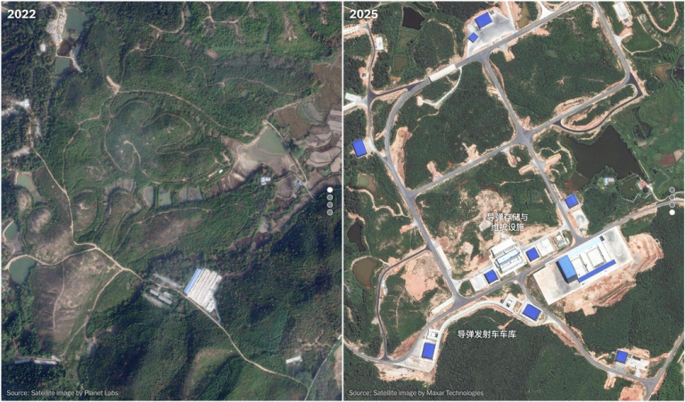 另一支火箭军部队是位于611旅驻地以南江西省的616旅,其规模也已迅速扩大。2020年拍摄的卫星图像显示,甚至在新冠病毒大流行最严重的时候,中国仍在清理和平整农田,仅18个月后,一个新基地的建设已接近完工。