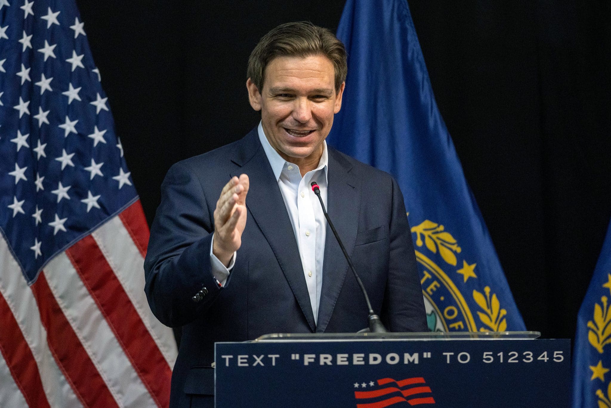 LACONIA, NEW HAMPSHIRE – JUNE 1: Republican presidential candidate Florida Governor Ron DeSantis delivers remarks during his “Our Great American Comeback” Tour 查看全文
