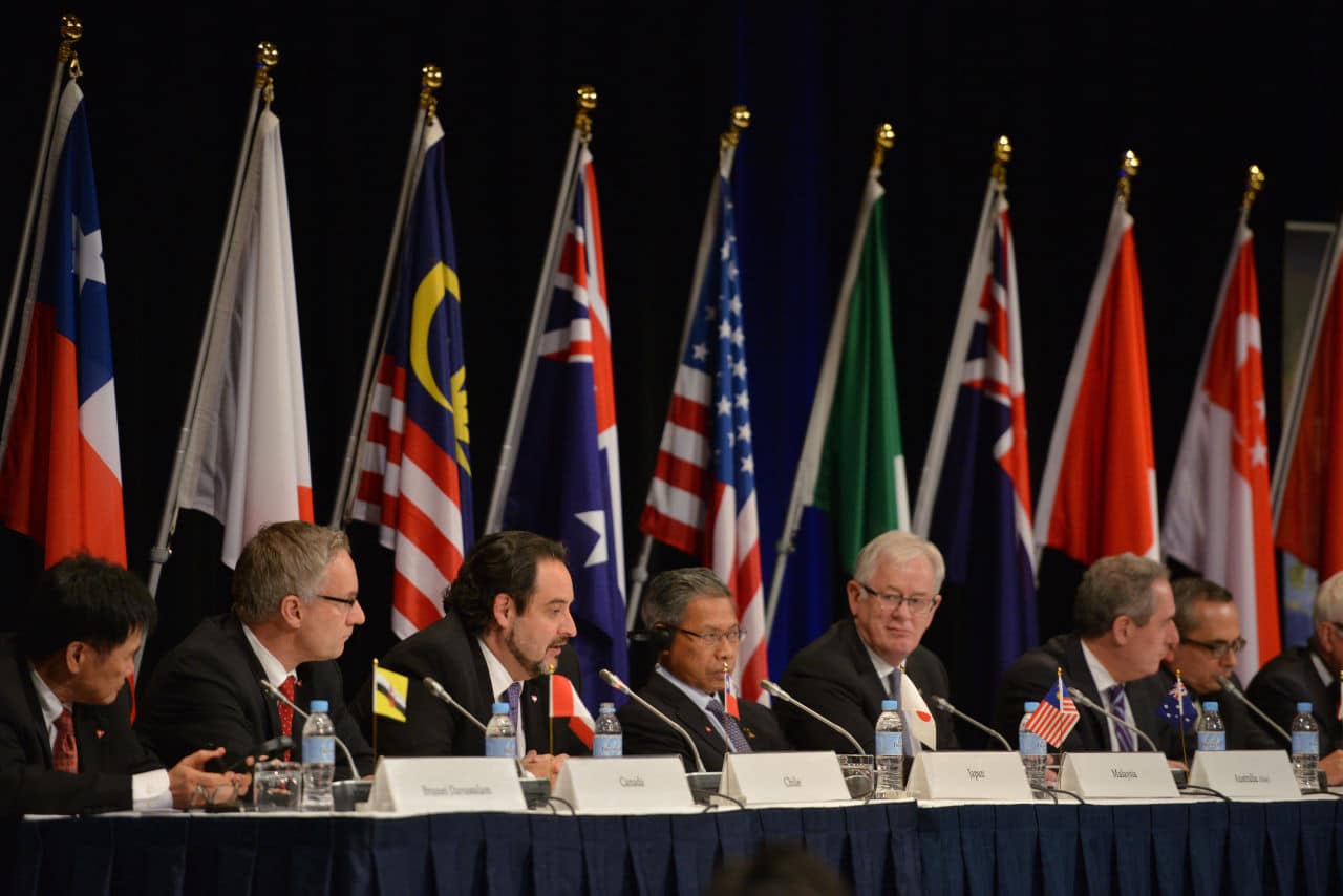 Trade representatives attend at a press conference for the Trans-Pacific Partnership (TPP), a pan-Pacific trade agreement by trade ministers from 12 查看全文