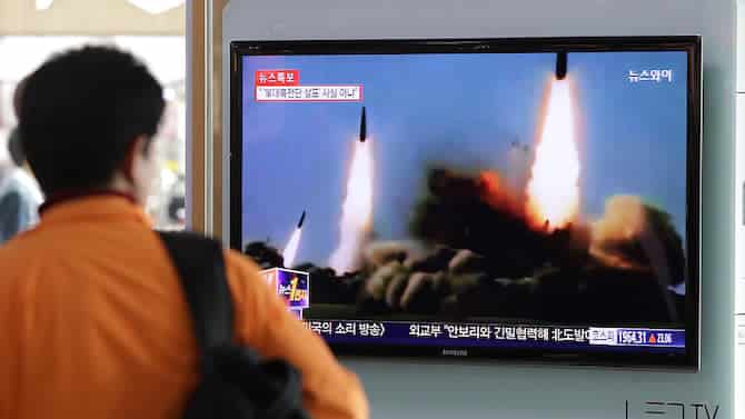 SEOUL, SOUTH KOREA – MARCH 26: A Man watchs a television broadcast reporting the North Korean missile launch at the Seoul Railway 查看全文
