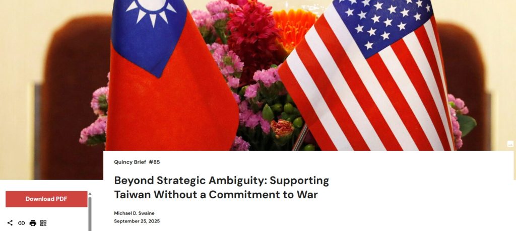 第三,一些美国学者提出,为避战,美国必须改变在是否介入台海防御问题上一直持有的模糊政策,而是应该明确、清晰地告诉台北,美国不会不支持台湾,但绝对不会武装介入它与北京在台海的冲突。昆西研究院的史文博士是这类观点的主要持有者【点击这里查看史文发表的相关文章】,之前他一直形单影只,近年来附和者不断增加。