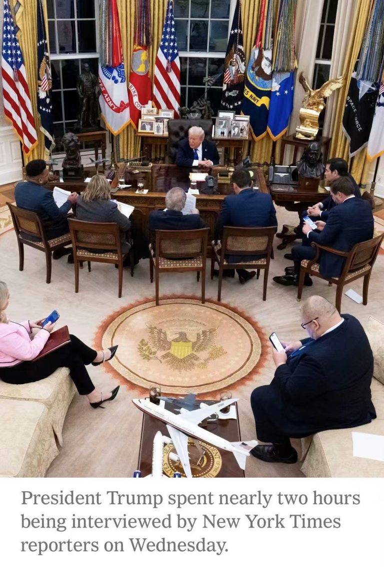 编者按:特朗普继承父业,一直在纽约开发房地产,但他是在介入媒体之后(做NBC真人秀“学徒”【Apprentice】的主持人)才变成家喻户晓的明星,为他后来的竞选总统打下了坚实的基础。他与媒体有特殊的关系。他认为象CBS、ABC、《纽时》这样的媒体极左,与他为敌,专门制造给他带来麻烦的各种假新闻(fake news)。所以,他会毫不犹豫底跟它们打官司。与此同时,他又非常喜欢与所有的记者互动,尽管有时会对一些让他难堪的记者破口大骂。特朗普1月7日在他椭圆办公室与《纽时》记者交谈近两个小时是他对主流媒体爱憎交加的例证。《纽时》是反对特朗普的媒体中坚之一,按理说他不应该接受它的记者的采访。当然,特朗普更愿意接受福克斯节目各位主持人的采访,甚至把其中一位提名为国防部长。从另一个角度讲,特朗普又是美国历史上最透明的总统,几乎天天面对记者,从不弯弯绕,有什么讲什么。《纽时》对特朗普的采访让我们对特朗普的世界观和国际观有了更深刻的认识。本站根据媒体报道整理了以下内容供读者参考。点击【这里】听这次采访的部分录音。