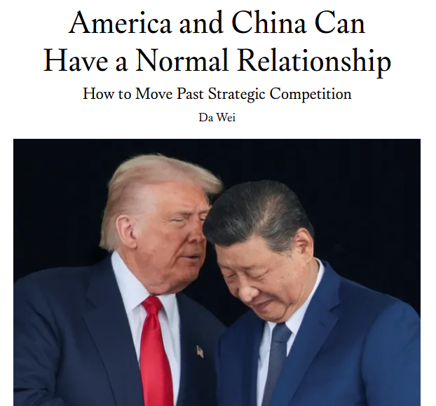 本文英文版2025年10月30日在美国《外交事务》杂志发表,英文题目和副标题为“America and China Can Have a Normal Relationship–How to Move Past Strategic Competition”,中文由清华大学国际战略与安全中心微信公号发布,本站特转发供读者参考。
