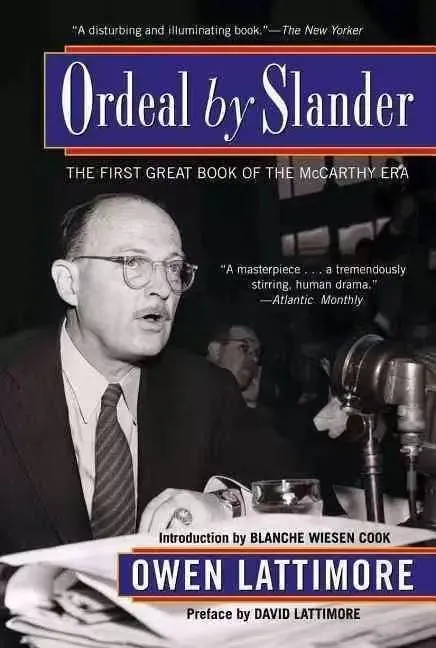 由于拉铁摩尔不是一个共产党人,他的“亲共”言论在美国言论自由的氛围中根本不足以成为其被麦卡锡指控为俄国间谍的证据,当然也不必为这样的言论承担任何法律或道德责任。因此,拉铁摩尔完全有理由为自己作出无罪辩护,对国务院安全小组委员会指控他的各项罪名,进行“有力的毫不客气的回击”。1950年,他专门撰写了《经得起诽谤》(Ordeal by Slander)一书,“以蔑视态度”责骂了国会中一股所谓的反共产主义势力,认为这股势力“把自由主义与不忠行为相提并论,而且不顾美国人关于正派与公道的一切传统观念。”其后他在麦卡伦小组委员会上发表了一份措辞强硬的声明,“这份声明宣泄了长期抑制的怒火和怨恨不平的情绪”,“当众反驳那些公开对准他的指责”。13拉铁摩尔内心很清楚,控告他“通共”罪名的最大困难之一是缺乏证据,按照他自己说法:“我只是一个因自己的观点而出名的个人,从未在政府里担任任何有影响的职务;正是这一事实使麦卡锡得以对我的指控弄得更加耸人听闻。”14泰丁斯委员会最后不得不据实宣布麦卡锡对拉铁摩尔的所有指控都没有事实依据,麦卡锡本人犯下了“欺骗或对参议院和美国人民胡说八道的罪过”。15费正清后来在其回忆录中高度评价了拉铁摩尔对麦卡锡主义所进行的英勇斗争,称赞《经得起诽谤》一书“在今天仍然值得一读,拉铁摩尔一家勇敢地面对乔·麦卡锡,在原则问题上毫不含糊,坚持到底。”16